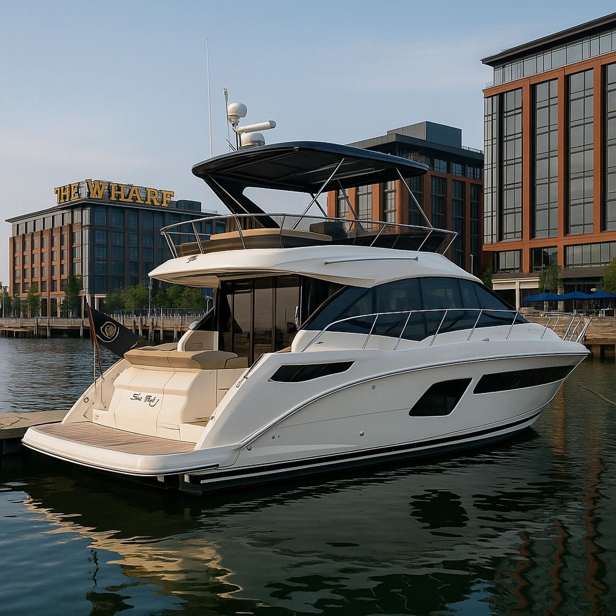 Solara is the embodiment of golden hour. A sleek cruiser designed for up to 12 guests, perfect for proposals, brunch parties, or after-dark lounging. Featuring a plush aft deck, shaded canopy, powerful surround-sound system, and swim platform for water dips. Ideal for curated experiences where closeness matters.